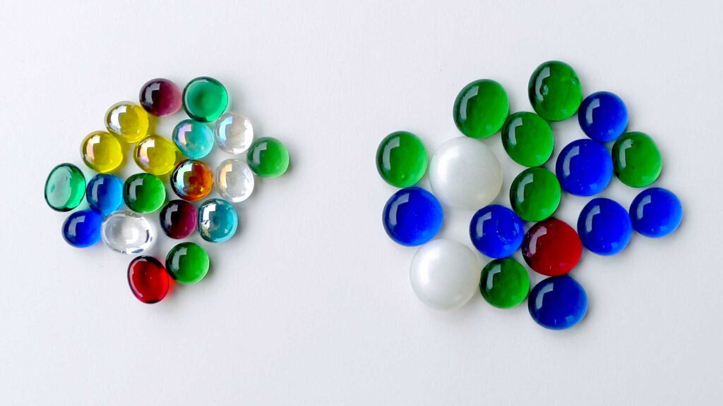 Nutze unbedingt zwei Farben. Hierdurch ergeben sich tolle Möglichkeiten, die Mengen strukturierter darzustellen.